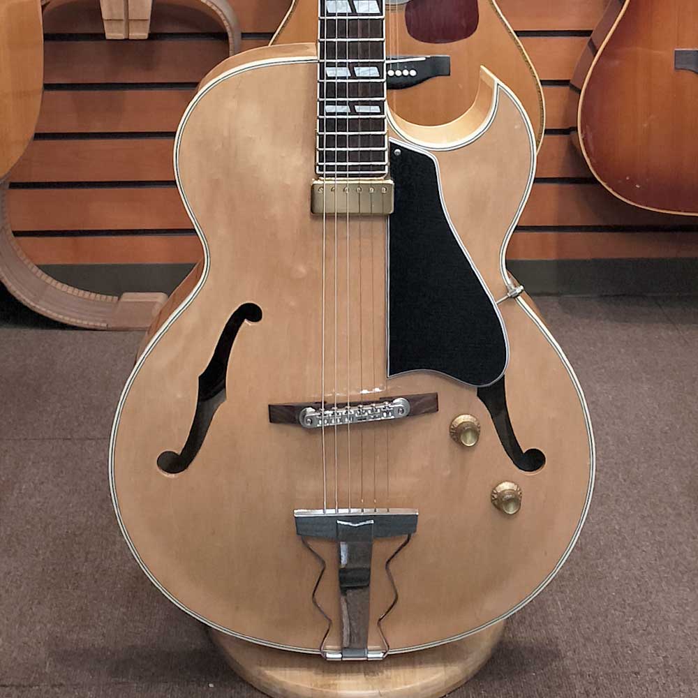 ピックガード、コントロールノブ、ブリッジ、テイルピースなど、交換されているパーツが多く断定は難しいですが、年代やインレイなどの使用からEG600Bかと思われます。ボディはバーチ、ネックはメイプルとローズウッド指板のウッドマテリアルをベースに、オリジナルのU-1000ハムバッキングピックアップが搭載されています。※トラスロッドほぼ緩みきりでネックはやや逆反り気味ですが演奏に支障ない状態です。ボディエ...