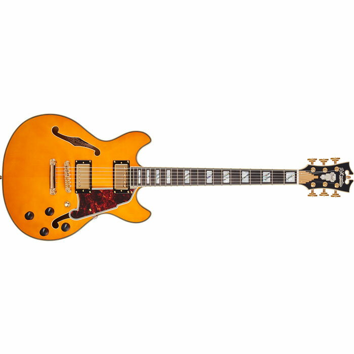 D'Angelico ディアンジェリコ Premier SS Champagne エレキギターPremier SSは、オリジナルの15インチ(381mm)幅、1.75インチ(44.45mm)厚のシングル・カッタウェイ・シェイプにセンター・ブロック構造をもったセミホロー・ボディーのモデルです。ディアンジェリコらしさを感じるオリジナル形状のピックガードは、5プライのトータス・シェル柄となって...