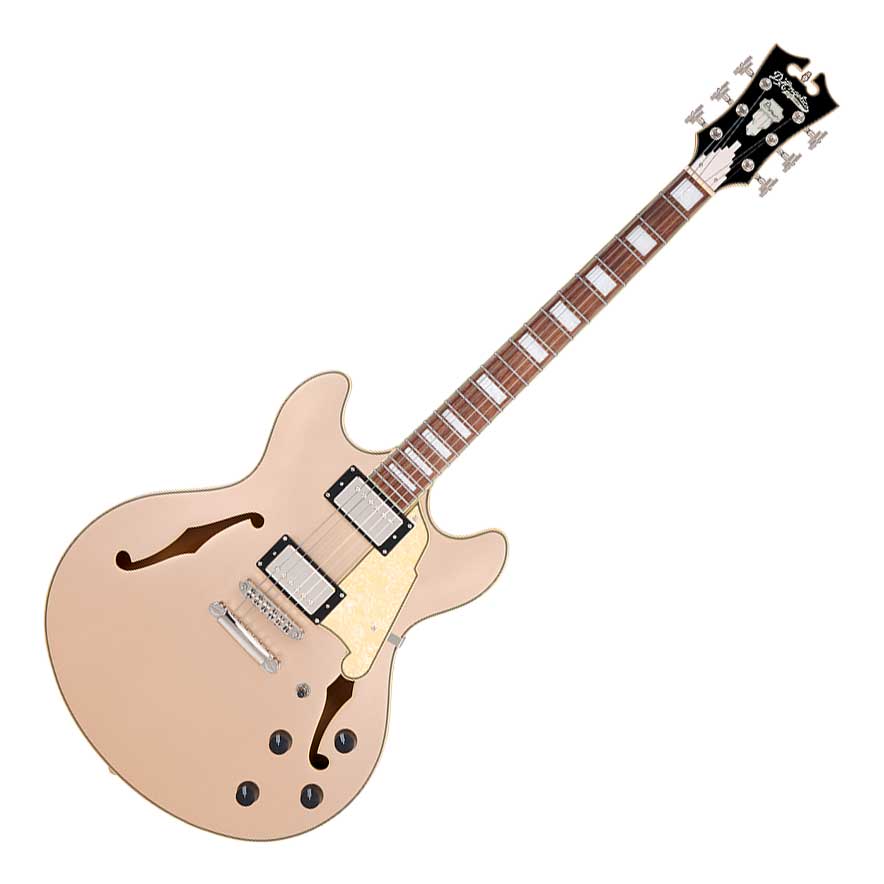 Premier DC XT Satin Desert Gold【特徴】センターブロック構造をもつ16インチ(406.4mm)幅、1.75インチ(44.45mm)厚のダブルカッタウェイセミホローモデルです。ボディートップ、ヘッドストックとネックにはバインディングが装飾され、ホワイトパーロイドブロックポジションマーカーと組み合わせた高級感のあるデザインです。メイプルボディー、メイプルネック&ウォルナッ...
