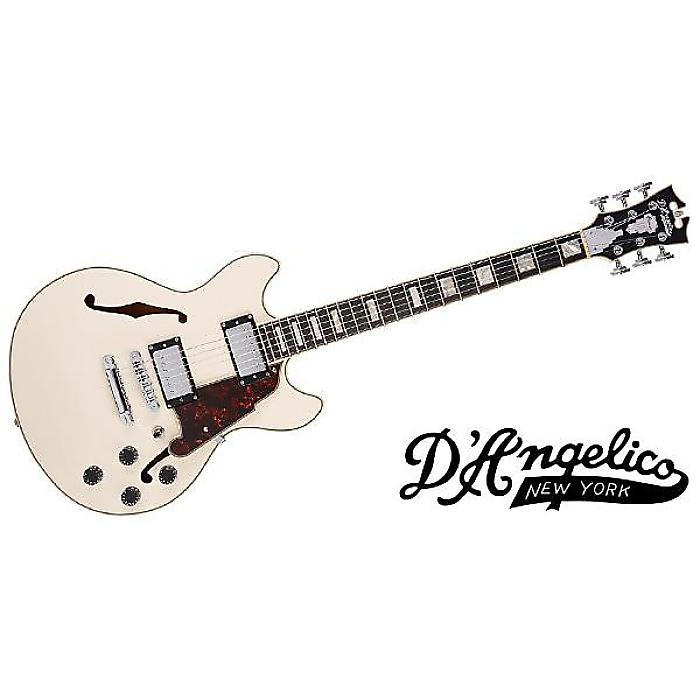 Premier DCは、16インチ(406.4mm)幅、1.75インチ(44.45mm)厚のオリジナル・ダブル・カッタウェイ・シェイプにセンター・ブロック構造をもったセミホロー・ボディーで、ストップバー・テイルピースを採用したモデルです。 ディアンジェリコらしさを感じるオリジナル形状のピックガードは、5プライのトータス・シェル柄となっています。 ボディー・トップ、ヘッドストックとネックにはバインデ...