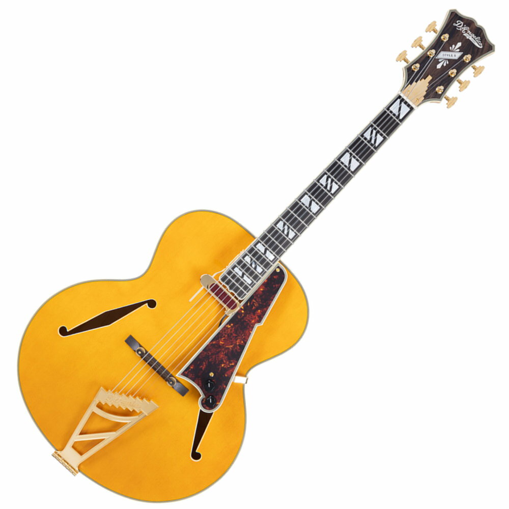 D'Angelico ディアンジェリコ Excel Style B Amber エレキギター フルアコExcel Style B Amberは、17インチ(431.8mm)幅、3インチ(76.2mm)厚のオリジナル・シェイプのアーチトップ・ホロー・ボディーのモデルです。ディアンジェリコらしさを感じるオリジナル形状のピックガードは、fホールの一部を思わせるデザインで、5プライのトータス・シ...
