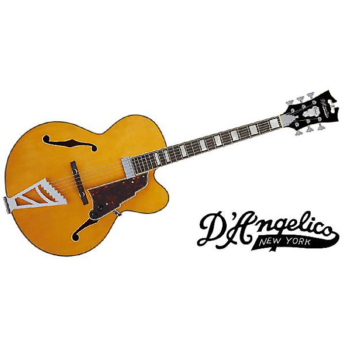 ※画像はサンプル画像になります。 Premier DC Stairstepは、16インチ(406.4mm)幅、1.75インチ(44.45mm)厚のオリジナル・ダブル・カッタウェイ・シェイプにセンター・ブロック構造をもったセミホロー・ボディーで、ステアーステップ・トラピーズ・テイルピースを採用したモデルです。 ディアンジェリコらしさを感じるオリジナル形状のピックガードは、5プライのトータス・シェル柄...