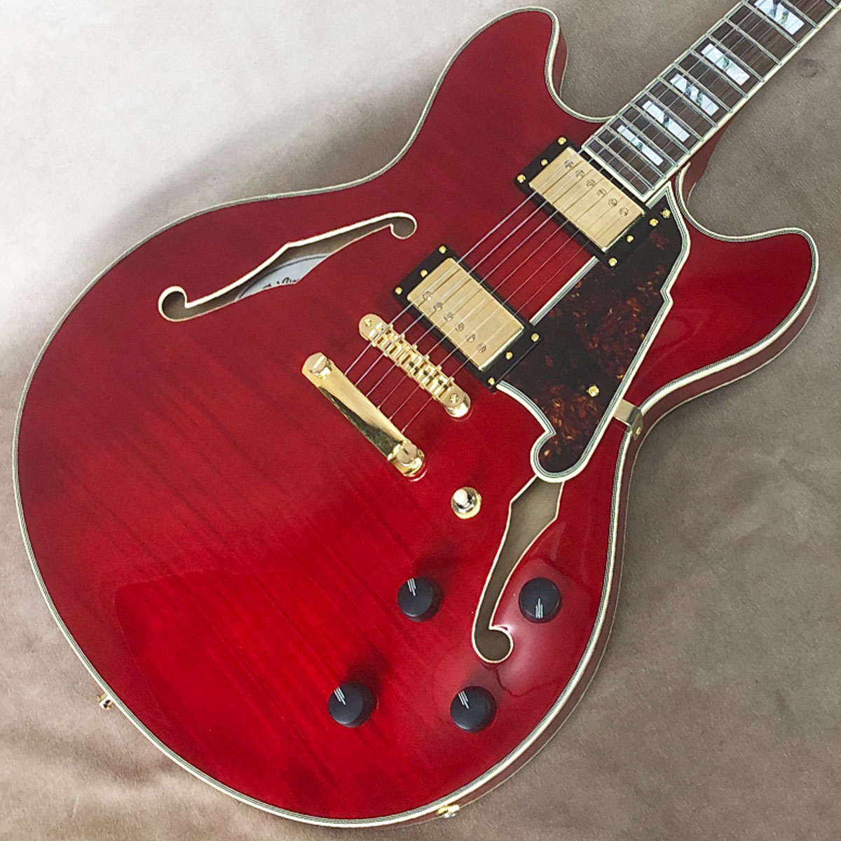 D'Angelico ディアンジェリコ Excel SS Trans Cherry エレキギターExcel SS Trans Cherryは、オリジナルの15インチ(381mm)幅、1.75インチ(44.45mm)厚のシングル・カッタウェイ・シェイプにセンター・ブロック構造をもったセミホロー・ボディーのモデルです。ディアンジェリコらしさを感じるオリジナル形状のピックガードは、fホールの一...