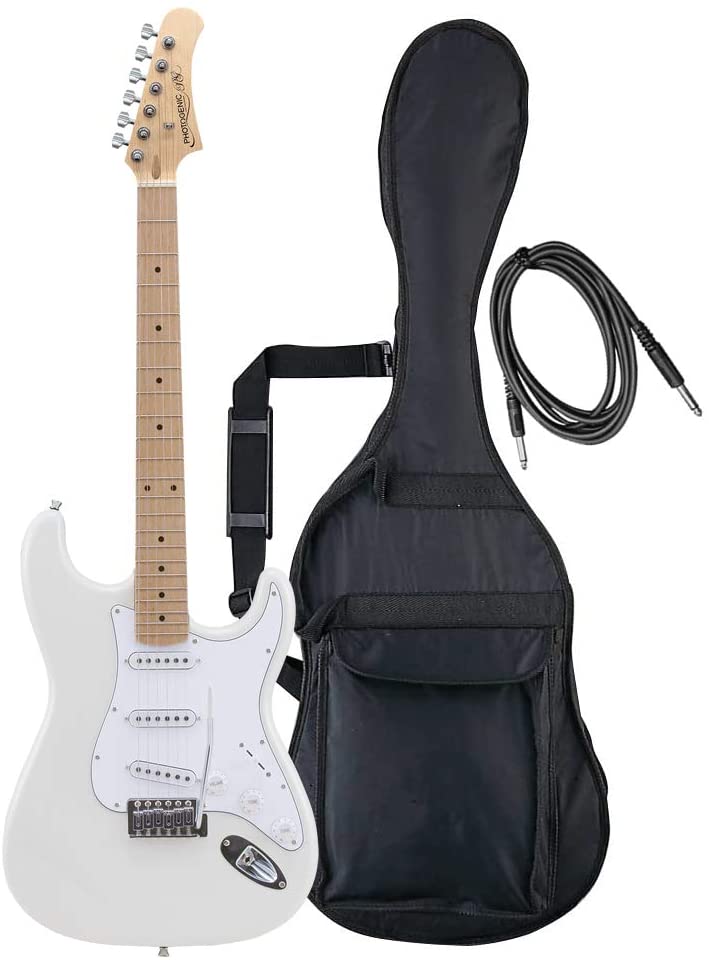届いたその日から始められる! 期間限定セール特別9点セット! 【エレキギター ST180 スペック】 ボディ ソリッドウッド ネック メイプル 指板 エンジニアウッド スケール 648mm22フレット ピックアップ Photogenic 3 Single Coil コントロール 1Volume / 2Tone / 5Way Pickup Selector 【セット内容】 エレキギター本体 Phot...